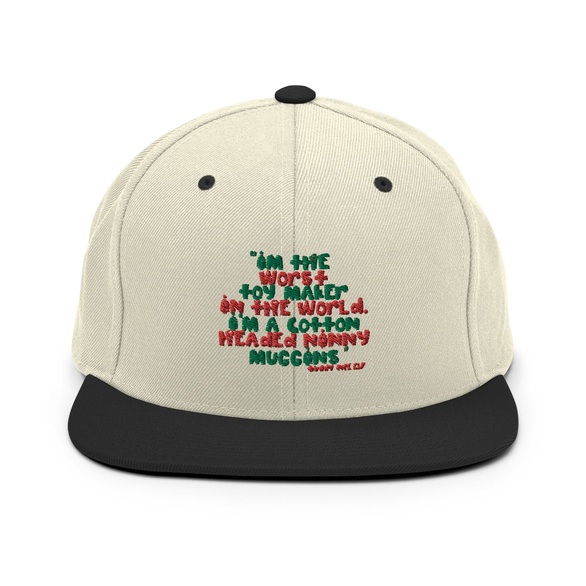 I’m the worst toy maker in the world. I’m a cotton headed ninny muggins -Buddy the Elf, Elf Snapback Hat