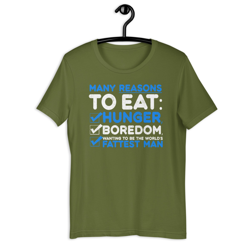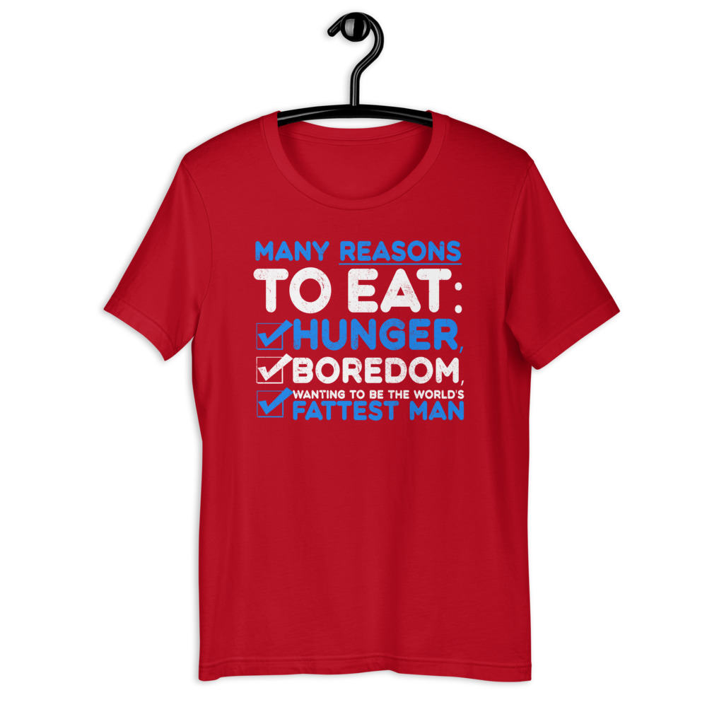 Many reason to eat: hunger, boredom, wanting to be the world’s fattest man Short-sleeve unisex t-shirt